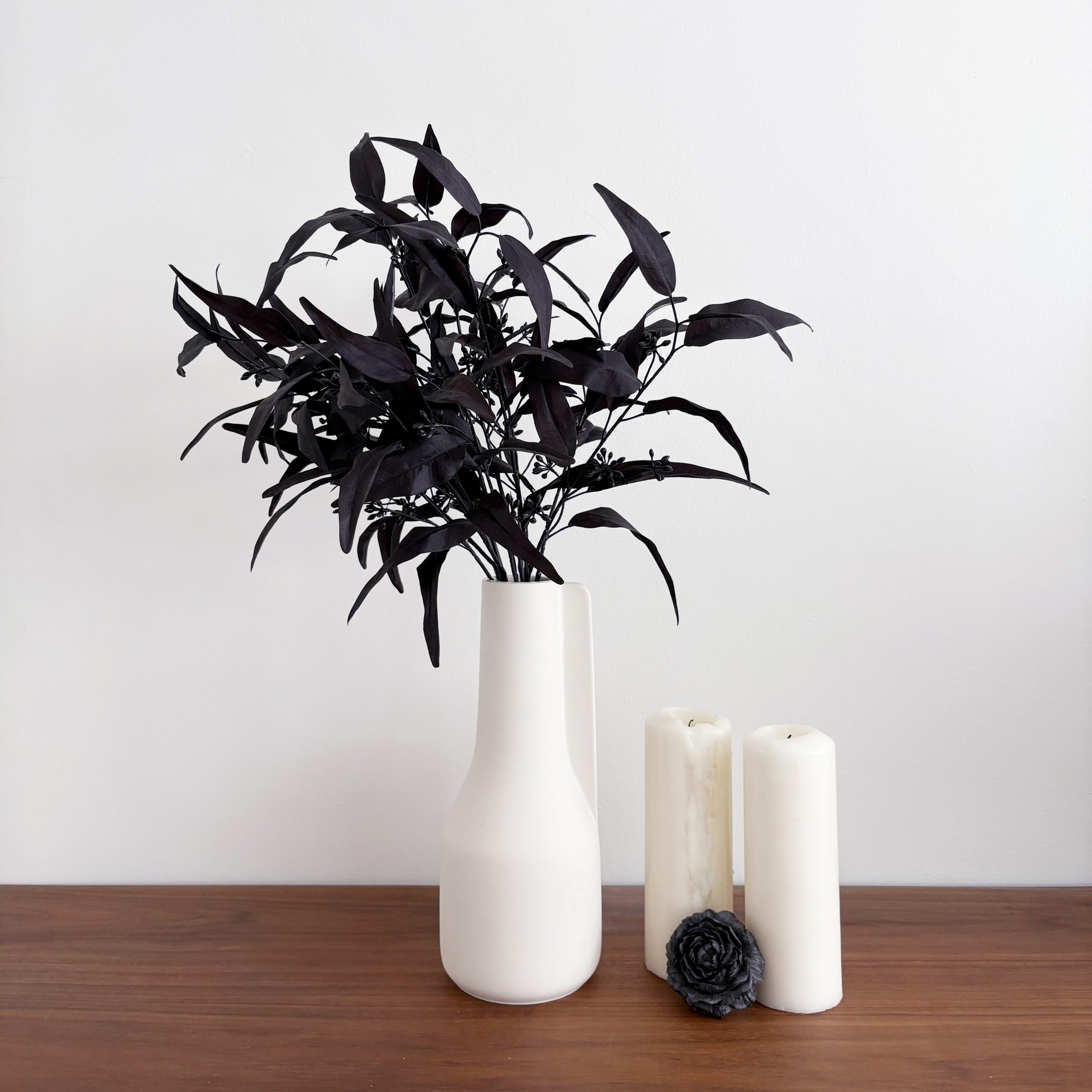 Bring the eerie elegance of Halloween into your home with our artificial Black Willow Eucalyptus. Featuring long stems with seed pods and slender leaves, each stem in dramatic black captures the natural movement of willow and eucalyptus for a spooky yet stylish effect.
