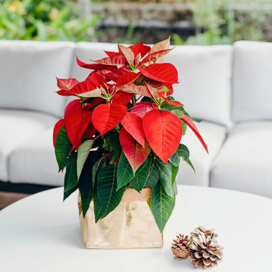 Is there a plant that feels more like Christmas than the iconic poinsettia? Aside from the Christmas tree, of course! Easy to care for, our poinsettia comes in a washable paper bag with a leather-like finish that can be reused long after the holidays.