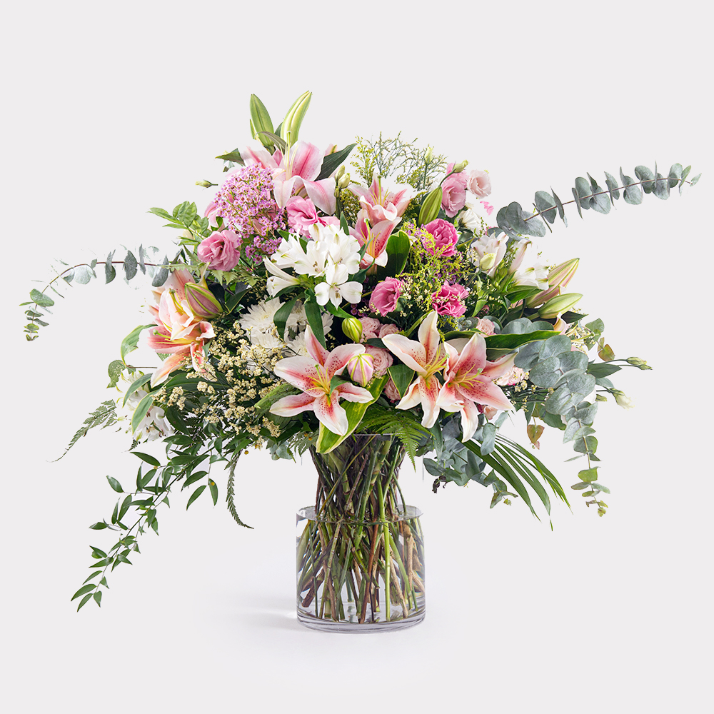 For the person who enjoys expressing their own creativity, this large glass cylinder vase is the perfect fit for big, bountiful blooms like our luxury lily flower arrangements. Simple in design this glass cylinder vase lends itself to any décor or design style.