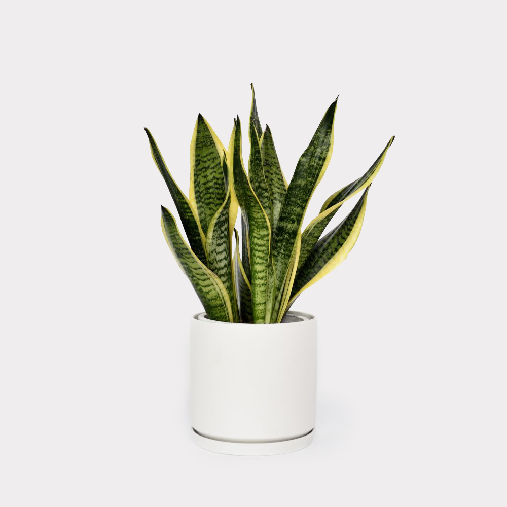This sassy, bold, architectural house plant is super tough and low maintenance. Also known as Snake Plant, it is considered to be good luck, mainly due to its air purification properties. It eats up toxins and releases oxygen at night.