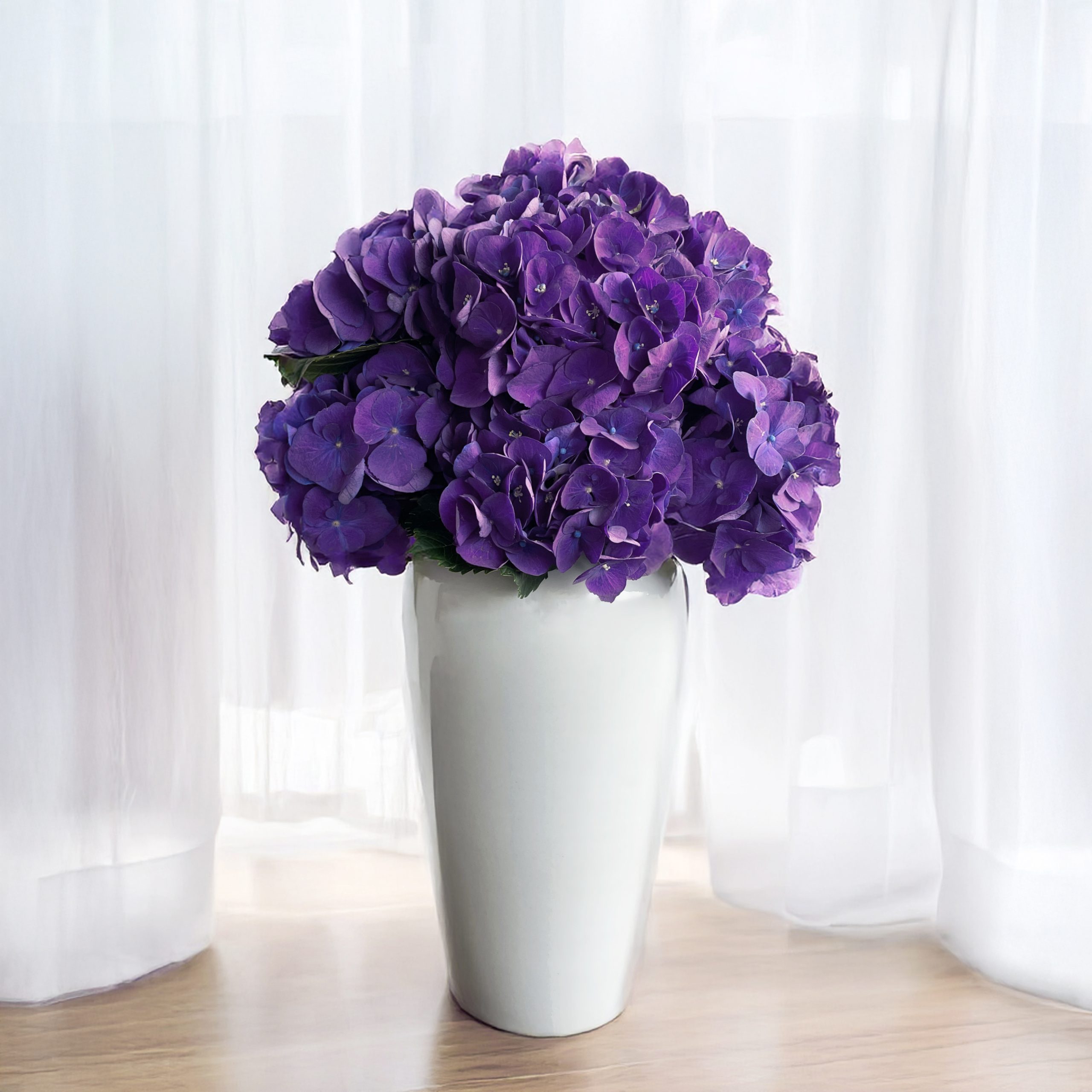 Purple hydrangeas symbolise admiration and grace. Their rich colours convey luxury and respect, ideal for expressing appreciation and celebrating special moments. Pop them in a vase of water for effortless style.