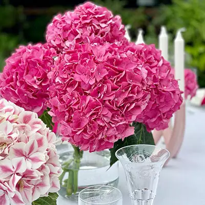 They drink a lot of water, and hence you need to feed them! Upon receiving the hydrangeas, submerge the stem in a vase and snip a chip of the stem (at a 45-degree angle). This will allow them to drink up faster.