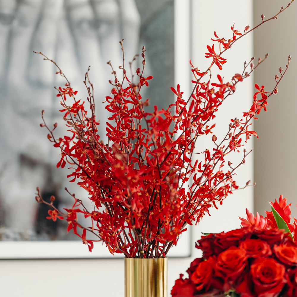 Flowers are seasonal and may be substituted with a close alternative of equal or greater value. For the gold vase pictured, the tall vase suits this variety best.