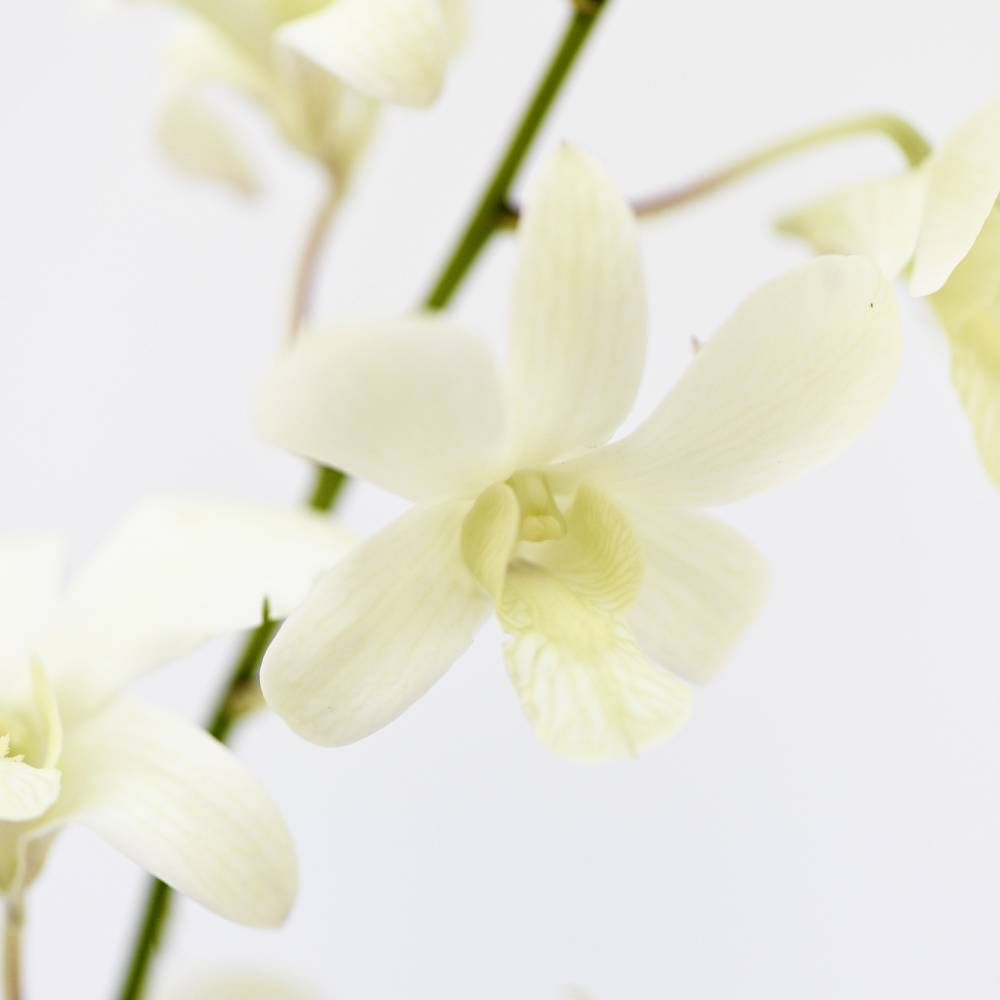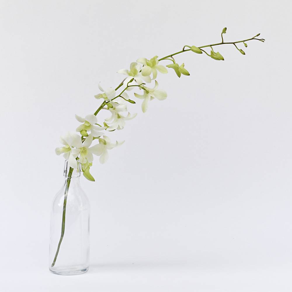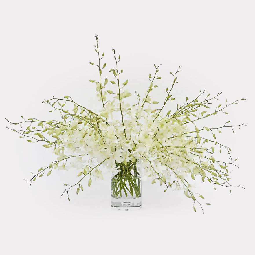 Create a simple, yet classic monochromatic display with these stunning Dendrobium white orchid blooms.