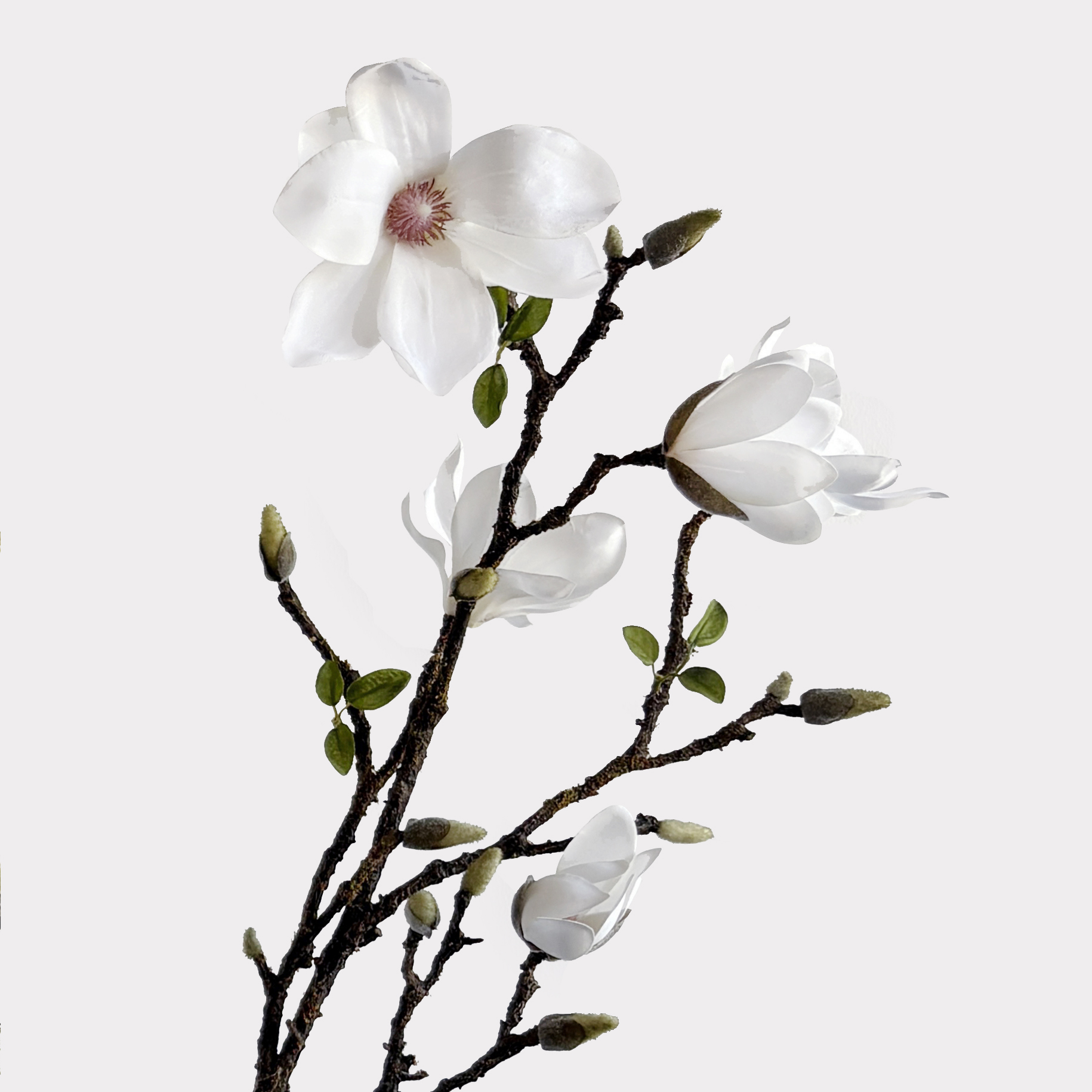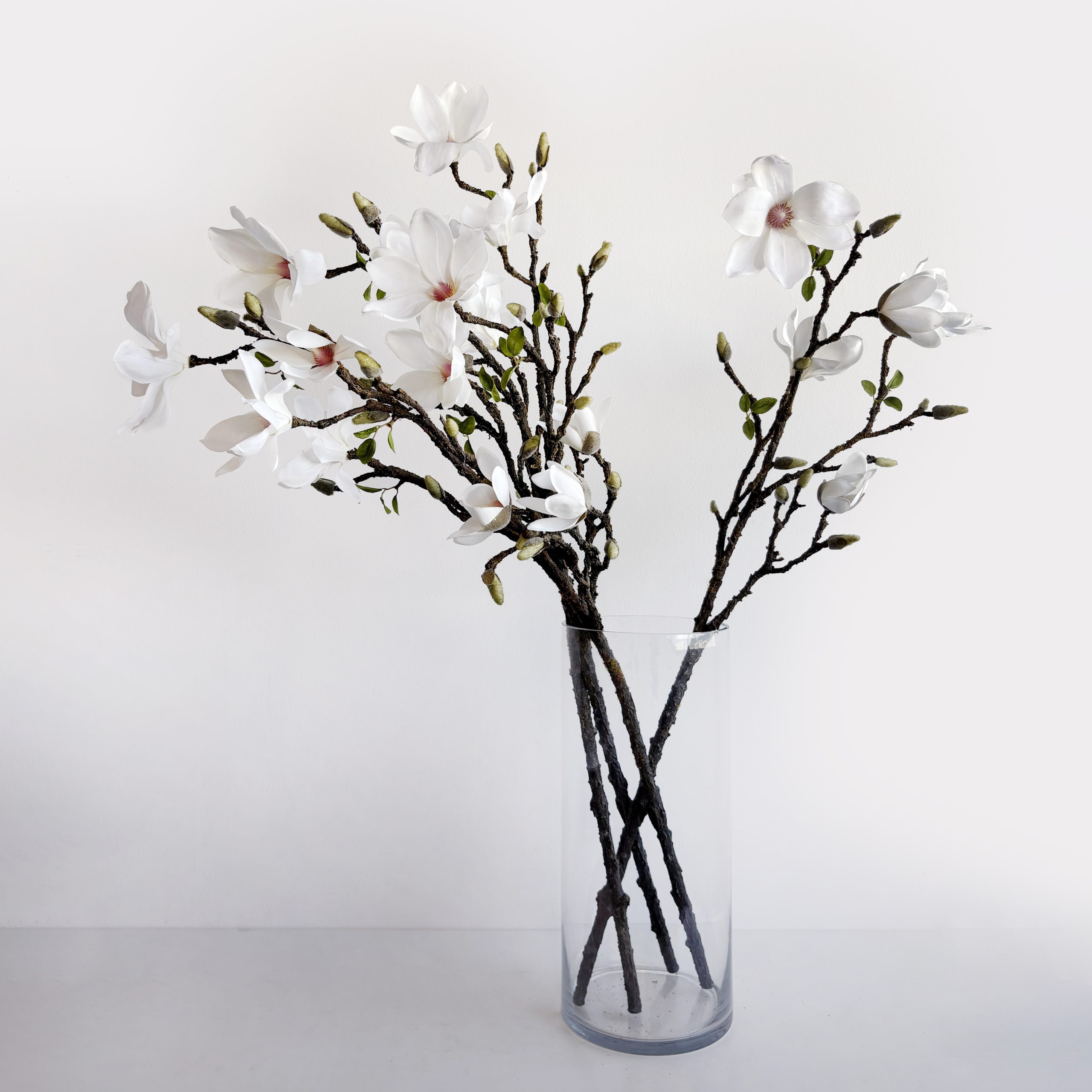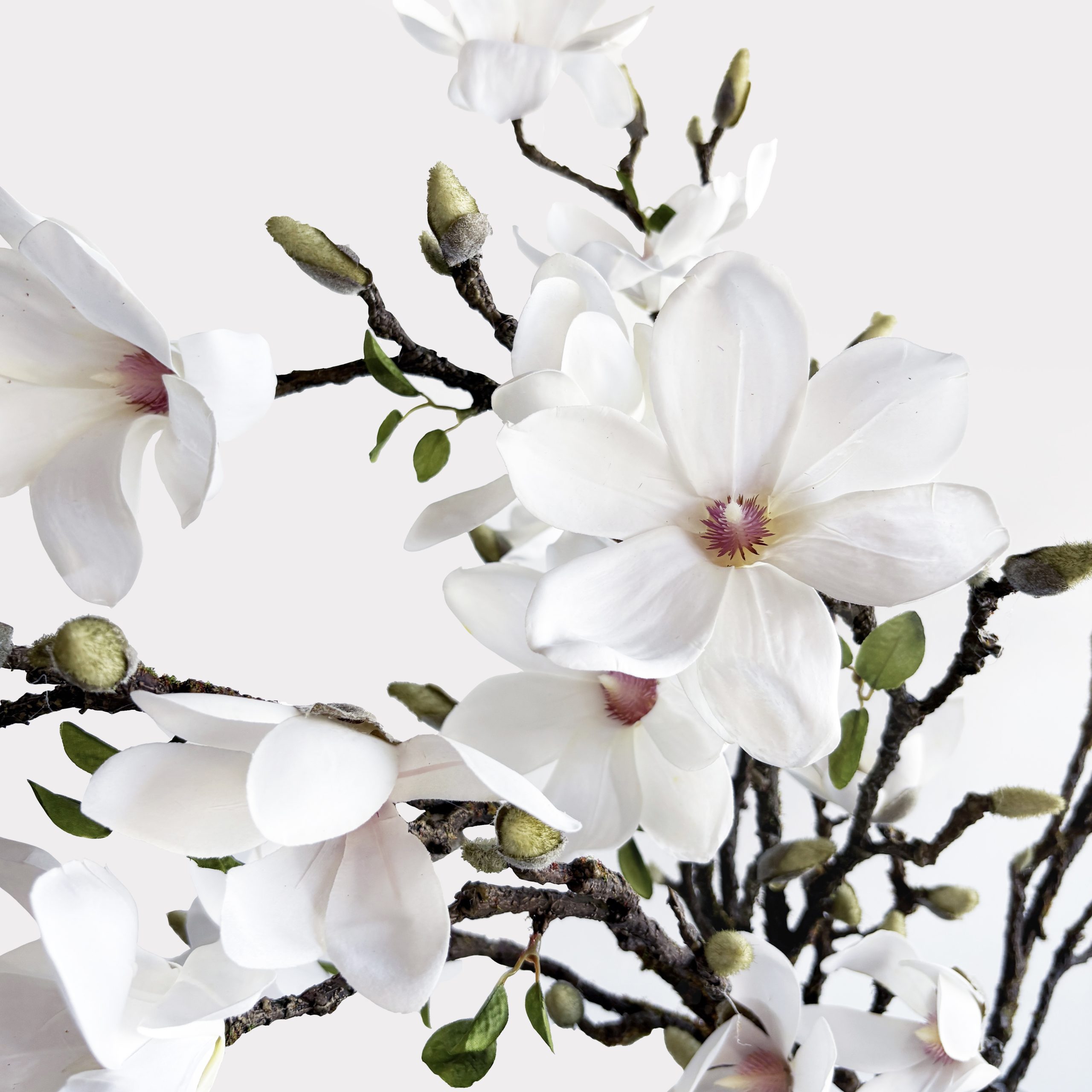 Prepare to be captivated by our large artificial Magnolia Branch. Each delicate detail, from budding to fully bloomed white flowers, is meticulously crafted to capture the beauty of nature. Long-lasting, hypoallergenic and fuss-free – no wilting, no odours and no assembly needed. Just dust gently to keep it looking fresh.