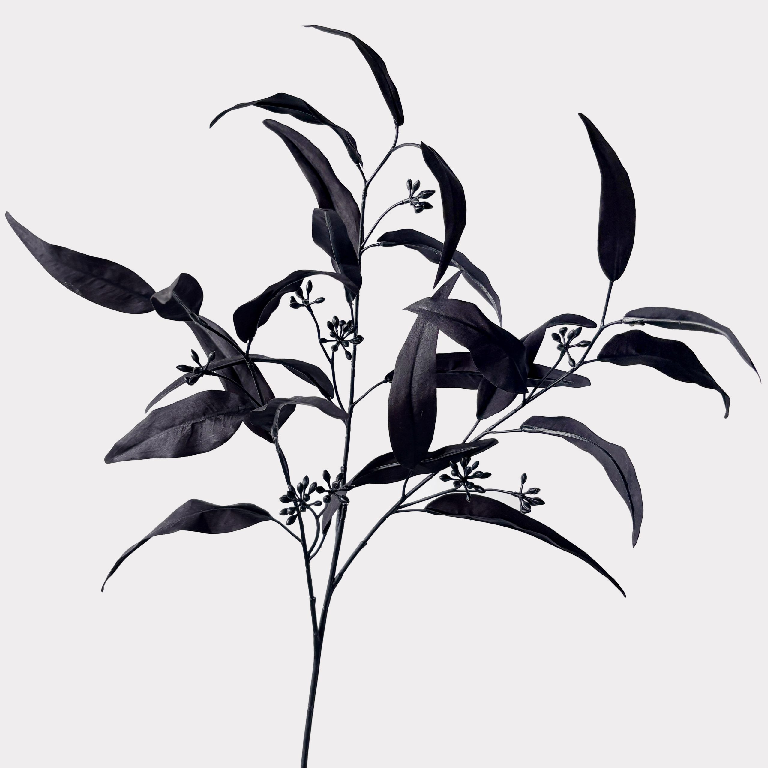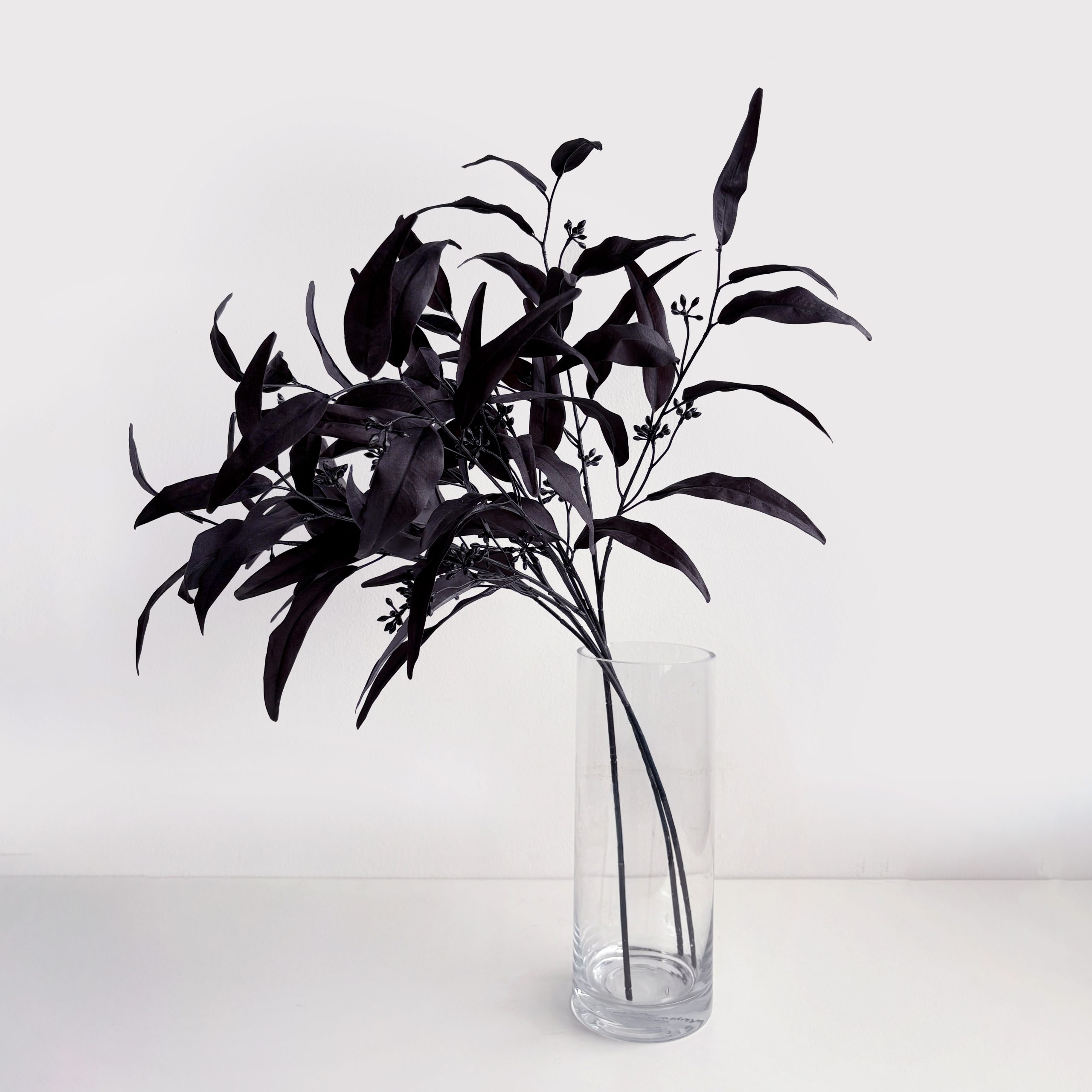 Bring the eerie elegance of Halloween into your home with our artificial Black Willow Eucalyptus. Featuring long stems with seed pods and slender leaves, each stem in dramatic black captures the natural movement of willow and eucalyptus for a spooky yet stylish effect.