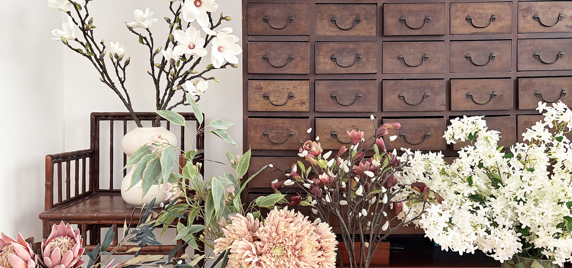 Love peonies in winter? Craving cherry blossoms in September? With our artificial flowers, seasonal availability is no longer a limitation. Your favourite blooms are now forever in season.