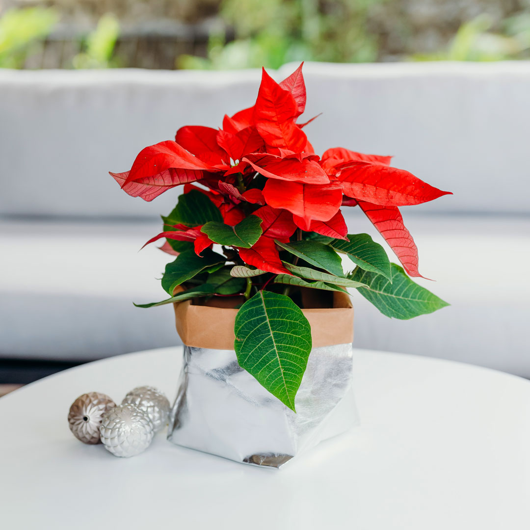 Is there a plant that feels more like Christmas than the iconic poinsettia? Aside from the Christmas tree, of course! Easy to care for, our poinsettia comes in a washable paper bag with a leather-like finish that can be reused long after the holidays.