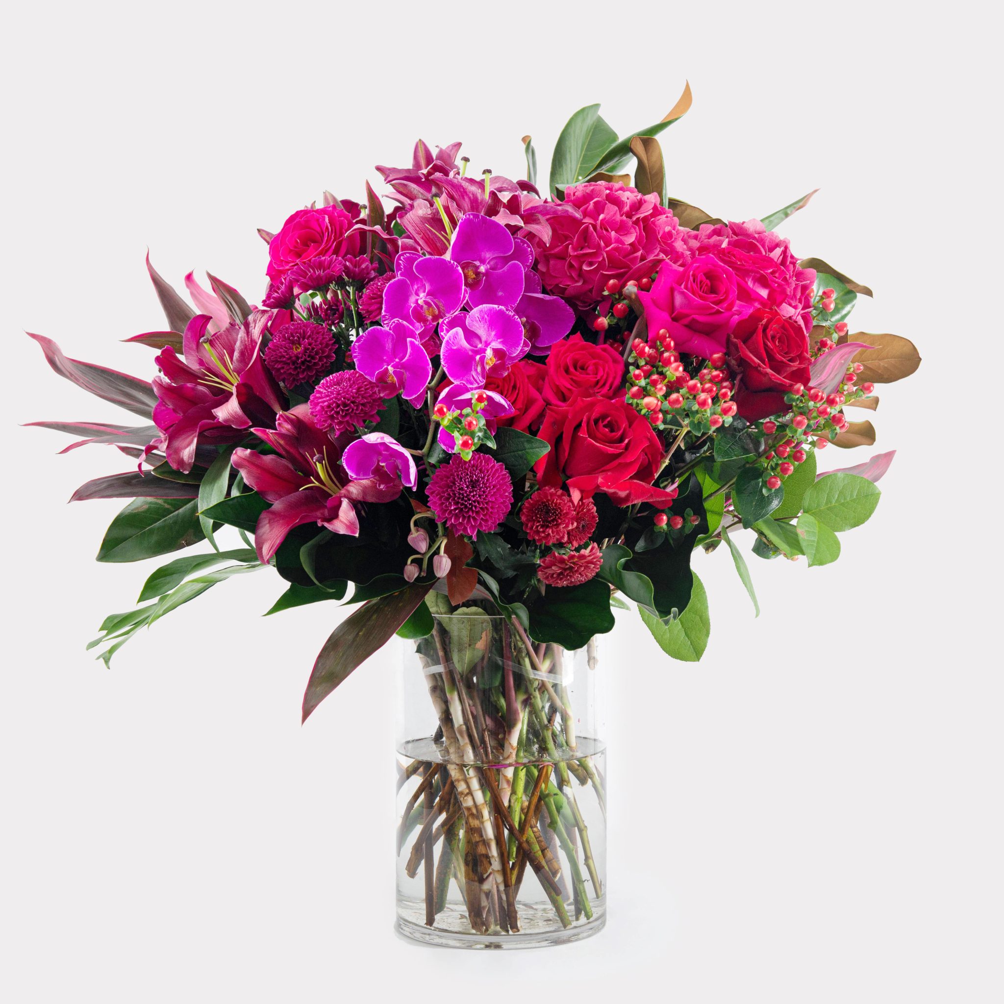 For the person who enjoys expressing their own creativity, this large glass cylinder vase is the perfect fit for big, bountiful blooms like our luxury lily flower arrangements. Simple in design this glass cylinder vase lends itself to any décor or design style.