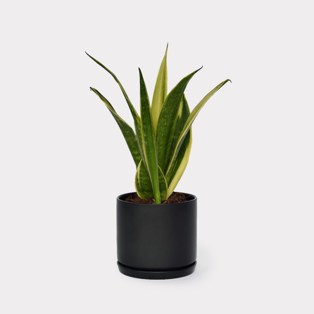 This sassy, bold, architectural house plant is super tough and low maintenance. Also known as Snake Plant, it is considered to be good luck, mainly due to its air purification properties. It eats up toxins and releases oxygen at night.